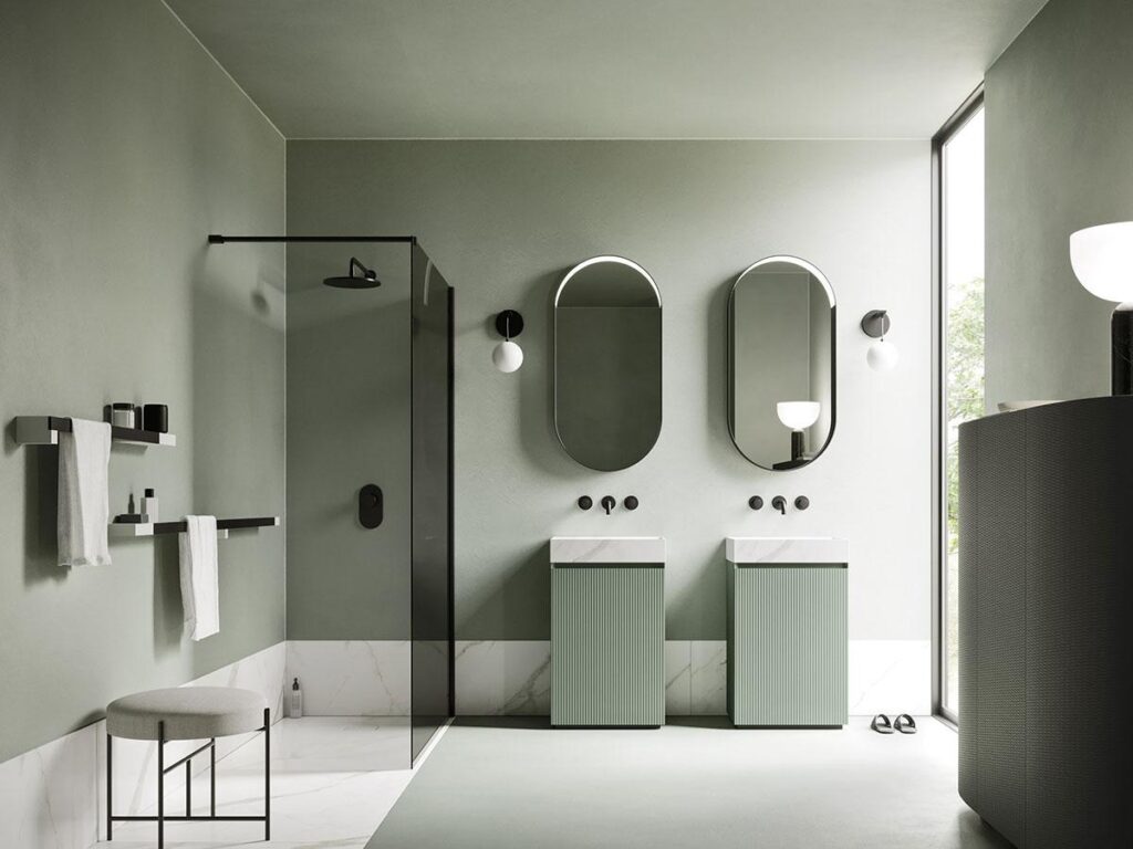 Las formas orgánicas y la curva suavizan las terminaciones abruptas que antes estábamos acostumbrados a ver en vanitorys, bachas y bañeras.